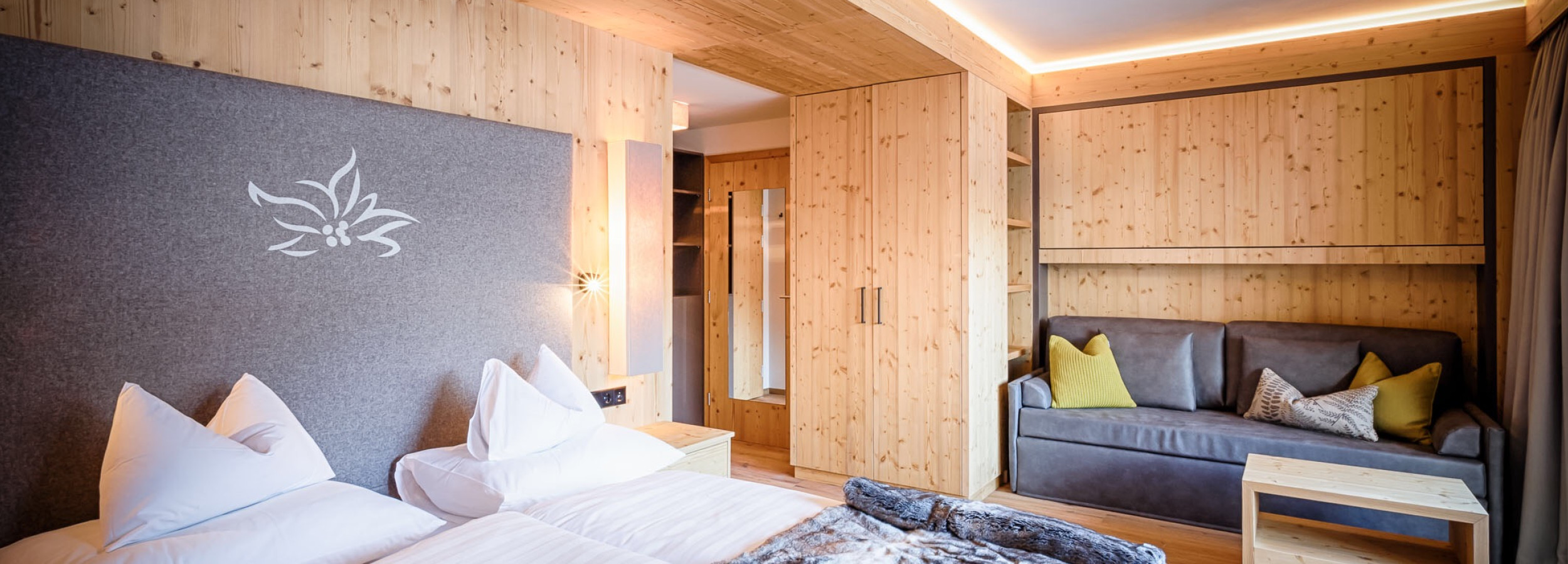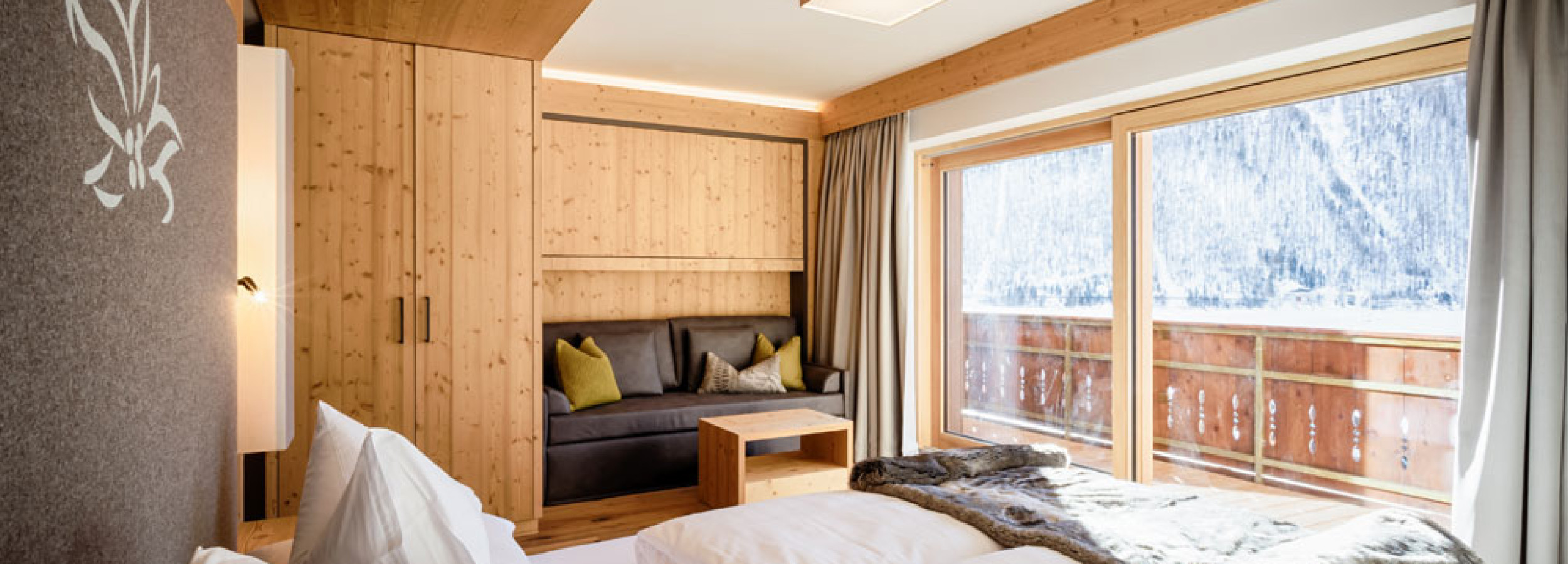 Alpine living with a view of the mountains, forests, and the lake. With a private balcony and plenty of coziness that makes staying in our luxury suites feel like coming home. Our rooms and suites are modern and equipped with every comfort, ranging from 30 to 50 m² in size and accommodating 2 to 3 people.