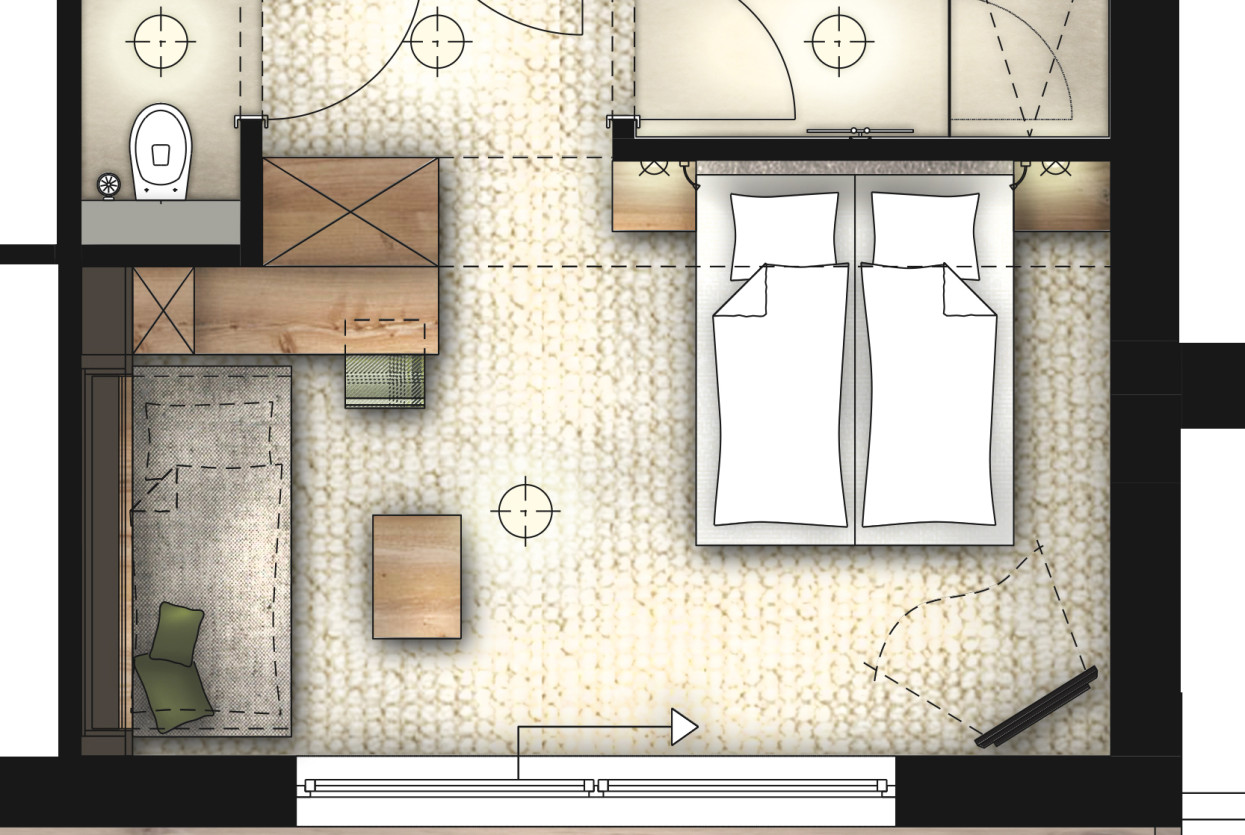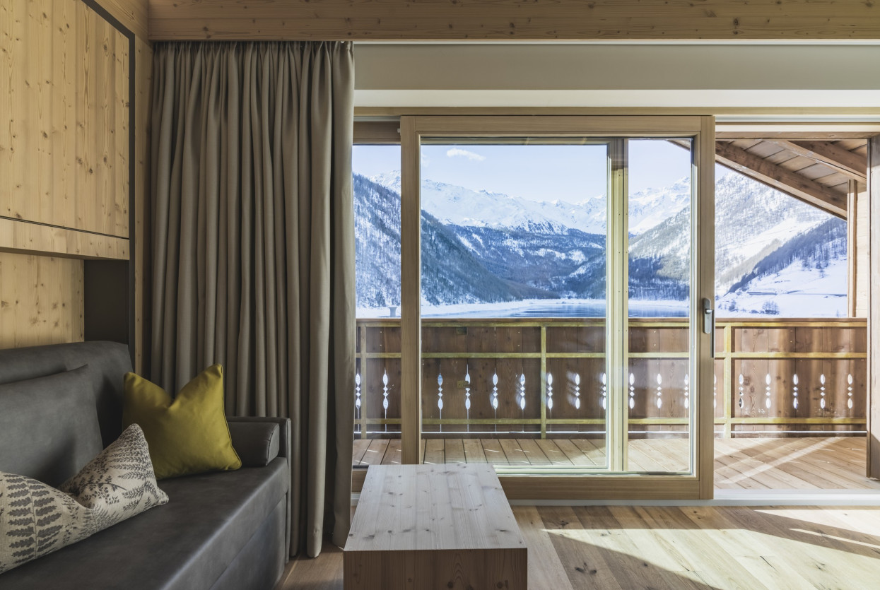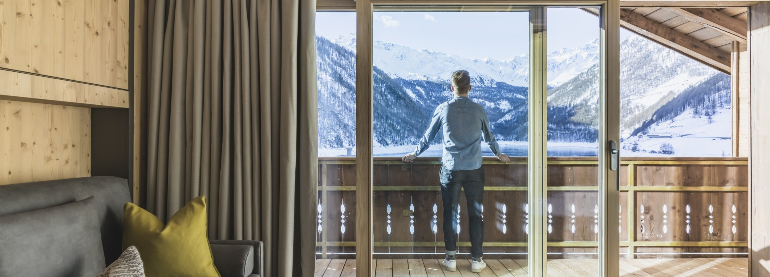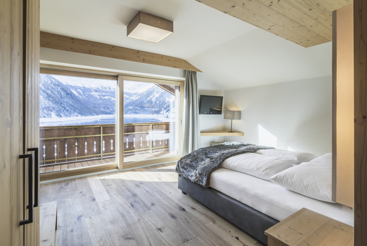 Wake up and gaze directly at the lake, whose colour shifts between deep blue and vibrant turquoise, at coniferous forests, and the surrounding mountain peaks like Lagaunspitze, Taschenjöchl, and Berglspitze. Take a deep breath and start your day comfortably... Our modern Suite Lake View features a balcony with lots of sunshine and can accommodate up to 3 people.