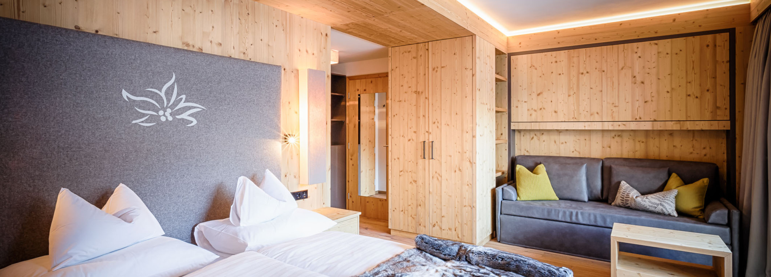 Svegliati dai primi raggi del sole e dall'attesa di una giornata di vacanza nella natura della Val Senales, la mattina inizia nella nostra Junior Suite Vista Lago. Sul proprio balcone, la vista spazia sul lago, sulle montagne e sui boschi circostanti. Questa suite è arredata in stile moderno e accogliente e può ospitare fino a 3 persone.